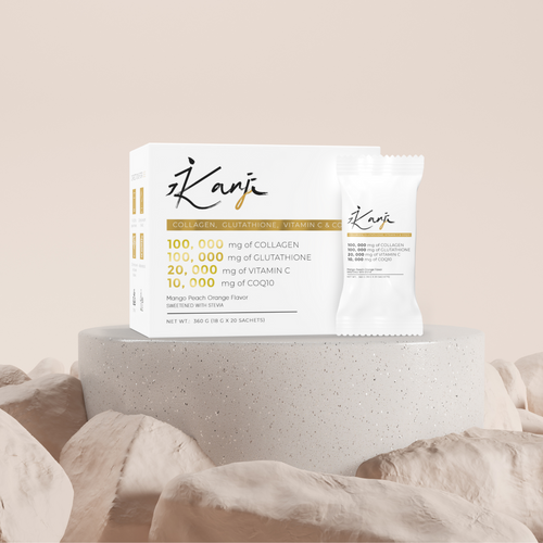 Kanji is a premium beauty supplement designed to improve your skin from the inside out. Each sachet contains 5,000mg of Marine Collagen to support firmness and hydration, 5,000mg of Glutathione for skin brightening and detox, and a powerful blend of over 15 antioxidants and skin-repairing nutrients. Taken daily, Kanji helps promote a clearer, smoother, and more radiant complexion while supporting overall wellness.